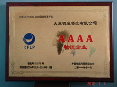 2012年1月4日,我公司通過中國物流與采購聯(lián)合會《AAAA級物流企業(yè)》資質(zhì)復(fù)審。
