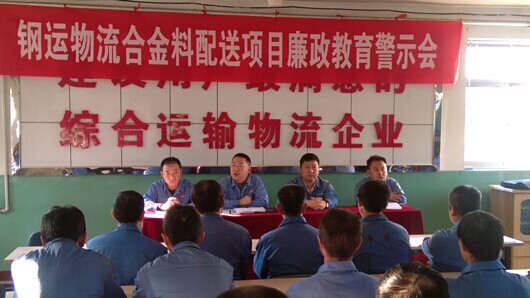 2015年10月10日,公司組織在分公司召開《鋼運物流合金料配送項目廉政教育警示會》,會議要求:分公司合金庫作業(yè)全體員工要嚴格執(zhí)行管控制度,落實標準化作業(yè),規(guī)范個人行為。管理人員通過自查自檢把各項管理制度落到實處。堅決打擊、堅決杜絕各類違法、違紀行為的發(fā)生。