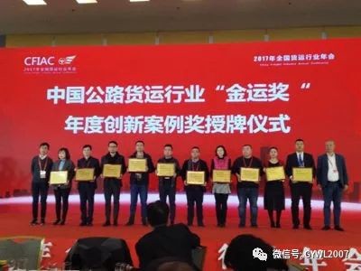 2018年1月26日,公司榮獲中國(guó)物流與采購(gòu)聯(lián)合會(huì)頒發(fā)的中國(guó)公路貨運(yùn)行業(yè)“金運(yùn)獎(jiǎng)”之2017年度創(chuàng)新案例獎(jiǎng)。
