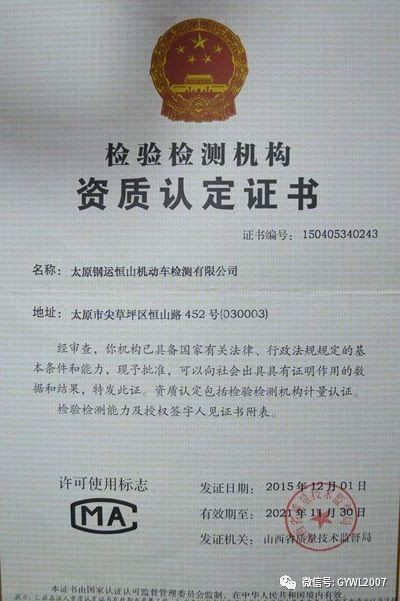 2018年11月22日,公司機動車檢測站通過檢驗檢測機構(gòu)資質(zhì)認定擴項評審,取得安檢1號線、2號線、綜檢1號線證書附表,標志著我公司已****具備安檢、環(huán)檢、綜檢三檢合一的資質(zhì)許可。